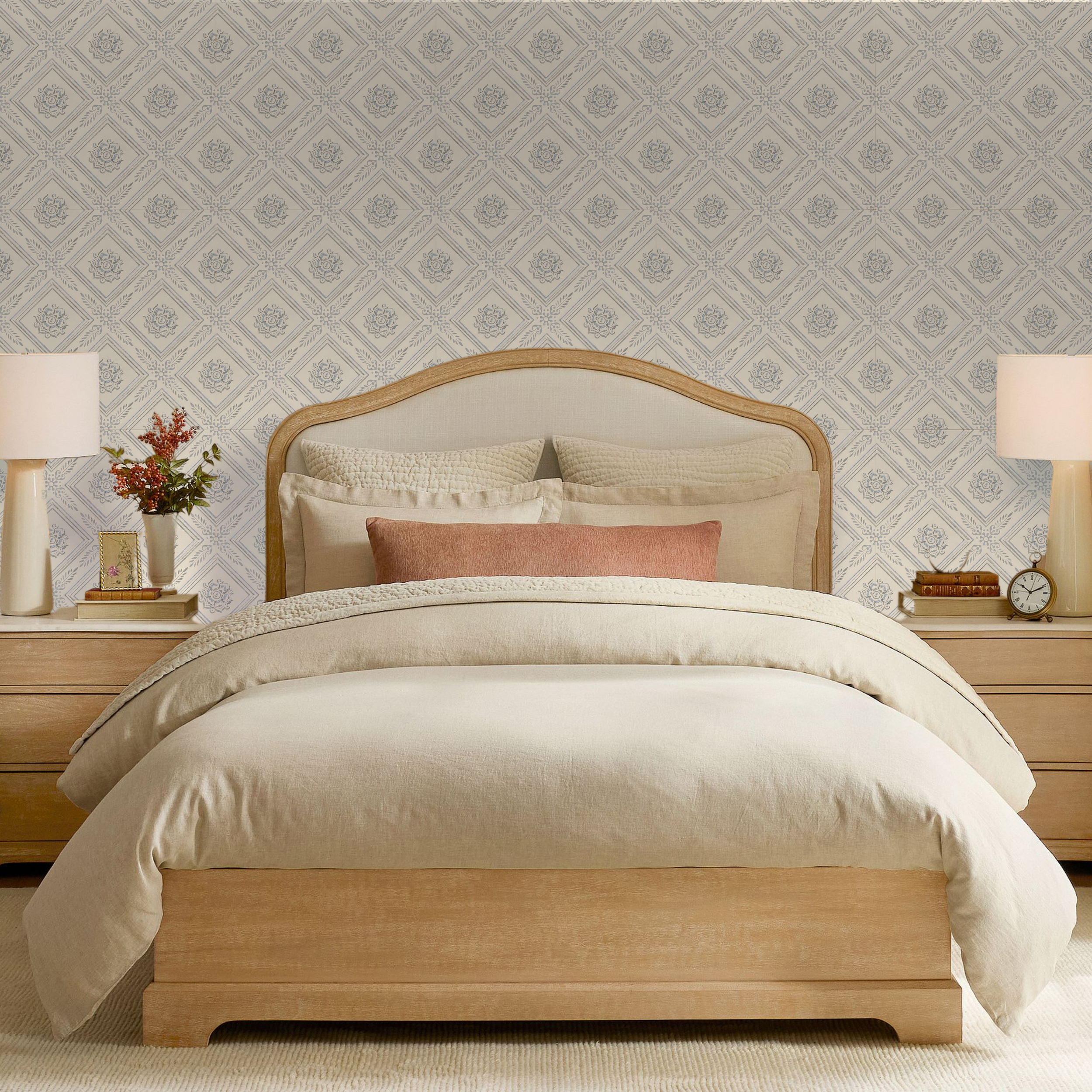 From wallpaper and textiles to bedding and home accents, each design is created to mix naturally across interiors. Patterns move easily from room to room, pairing soft color with subtle texture to create spaces that feel warm, welcoming, and quietly expressive.
